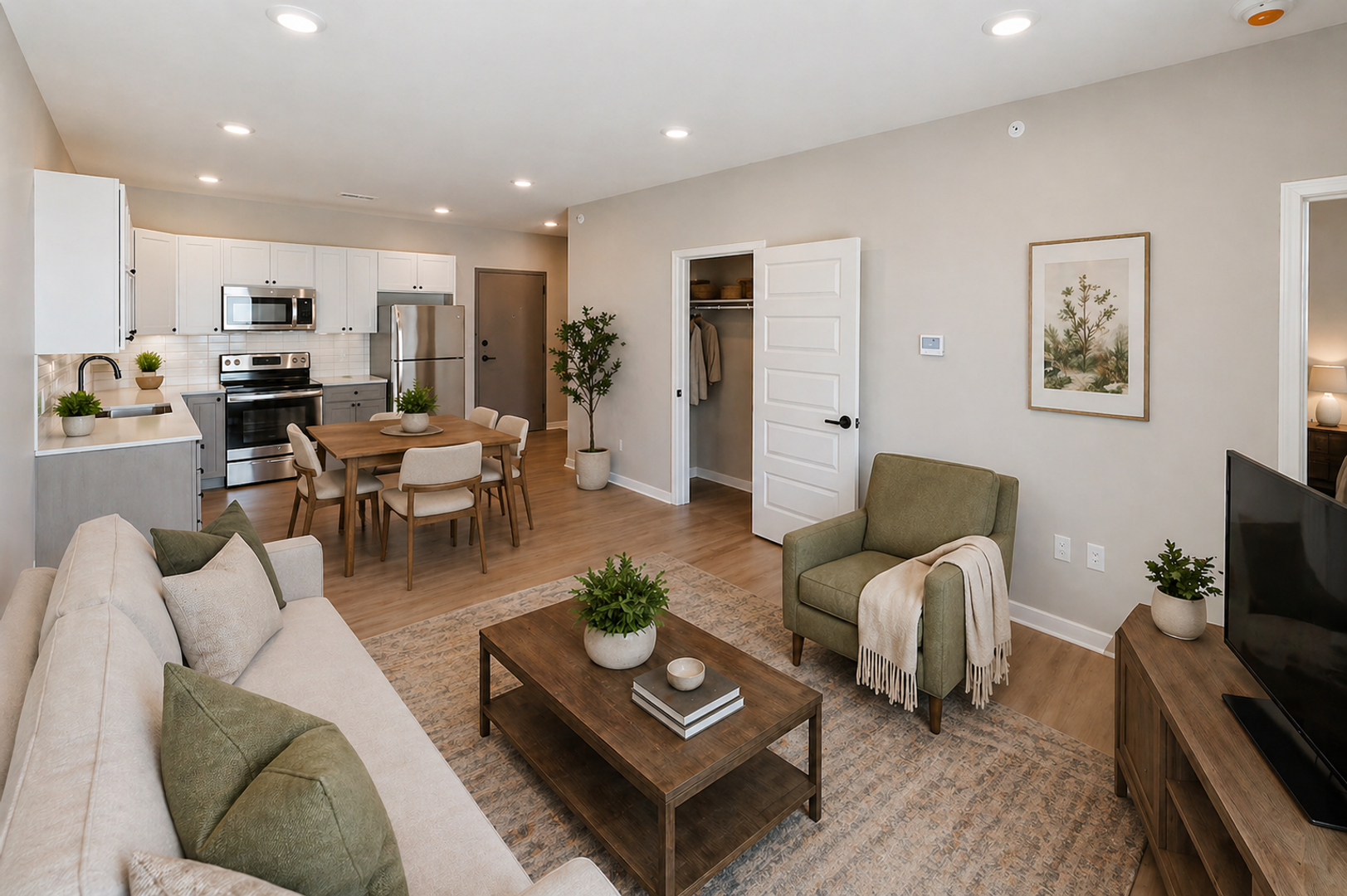 Welcome home to a beautifully designed 1-Bedroom apartment that blends modern luxury with everyday comfort. Enjoy an open floor plan, floor-to-ceiling windows that flood your space with natural light, and a sleek kitchen featuring stainless steel appliances—perfect for cooking, hosting, or relaxing at the end of the day.