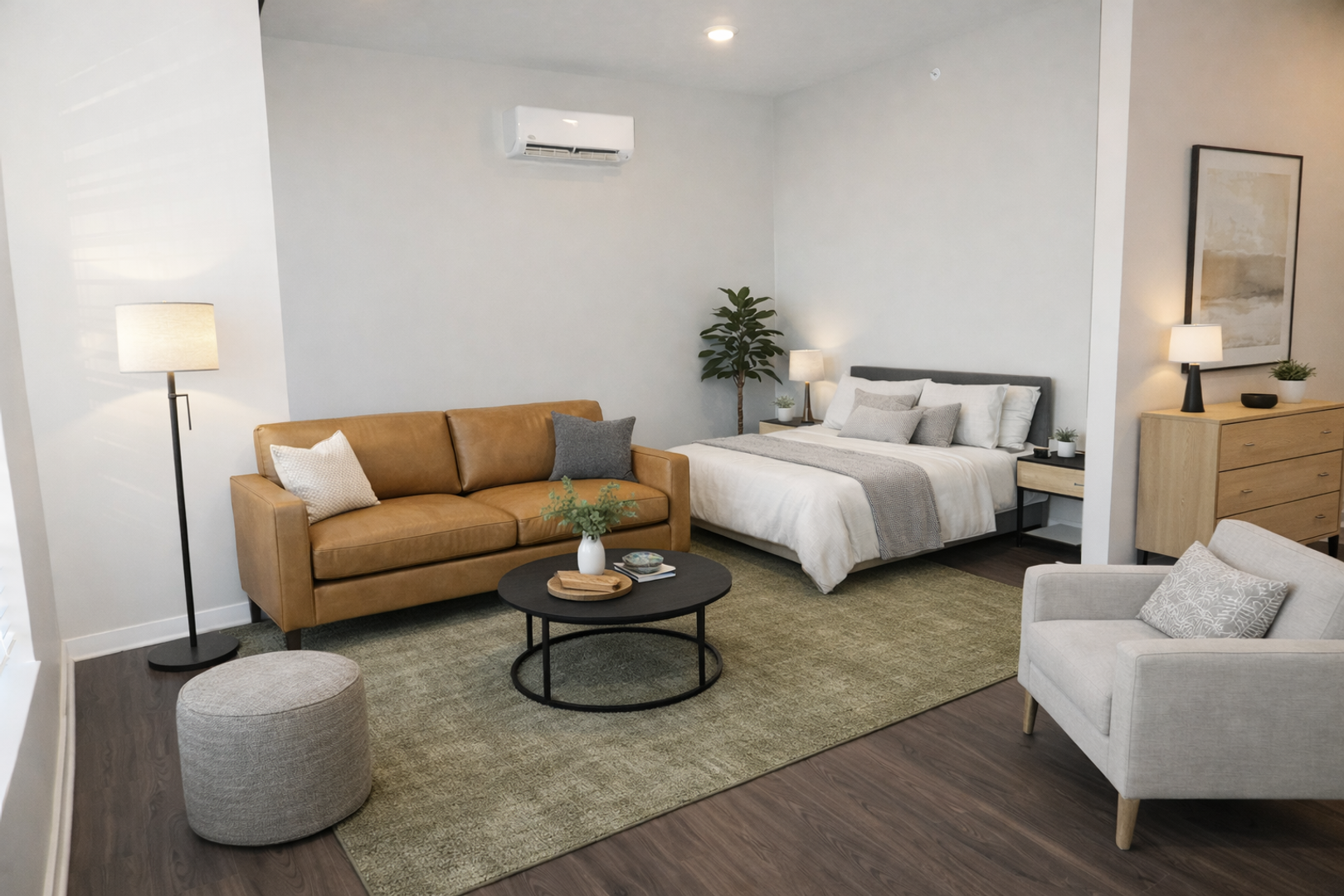 Meet the Poppy; a thoughtfully designed 541 sq. ft. studio that makes the most of every inch. Facing north, this unit offers soft, natural light and peaceful views, creating a calm and comfortable space to come home to.